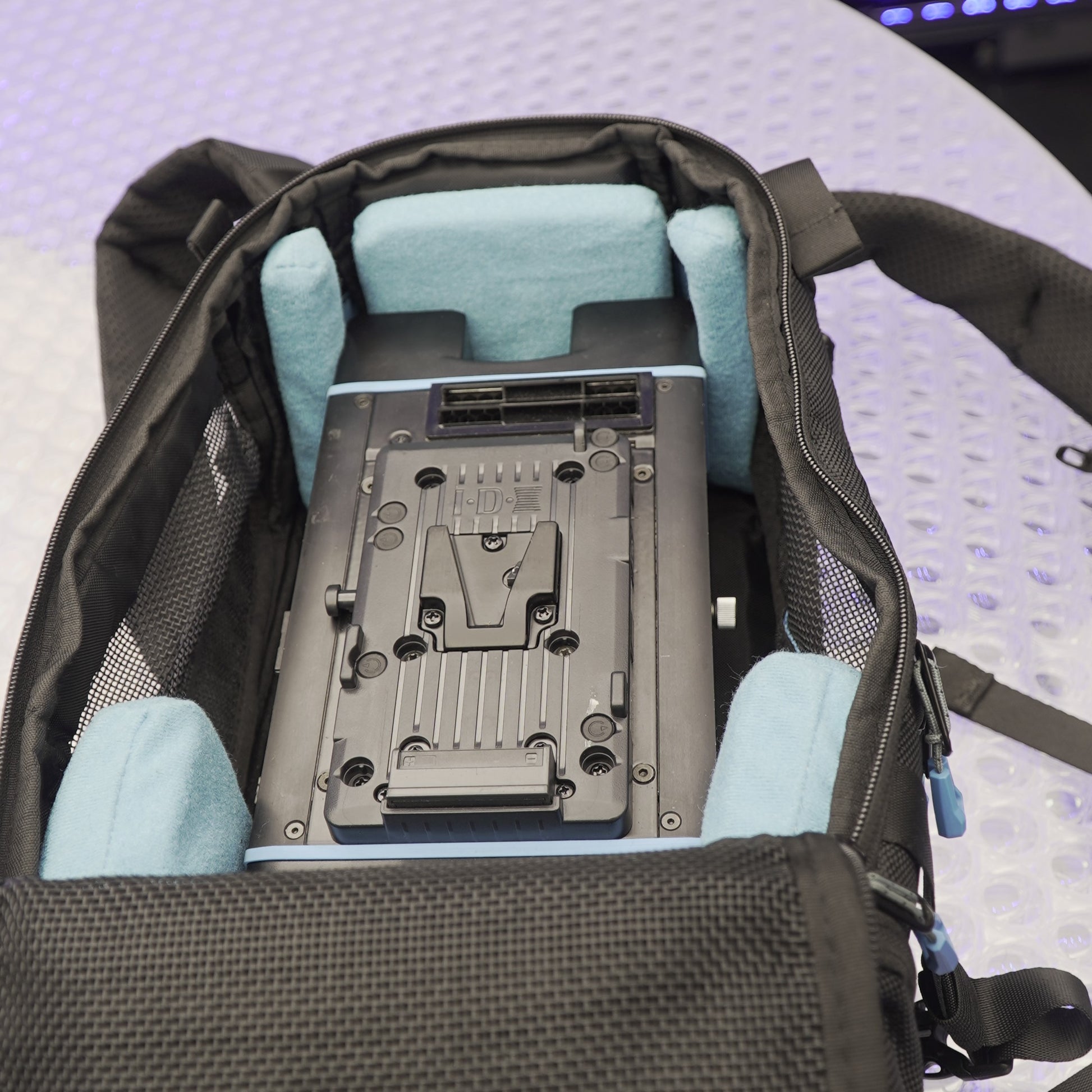 Format terrain, montage caméra ou sac à dos, pour captation mobile facile et rapide.