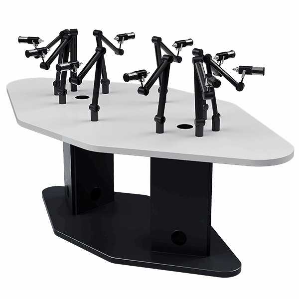 Meuble Radio - Plateau Playwood - compact, ergonomiques et beau permet d'accueillir jusqu'à 3 à 6 personnes tout en gardant un confort de travail.